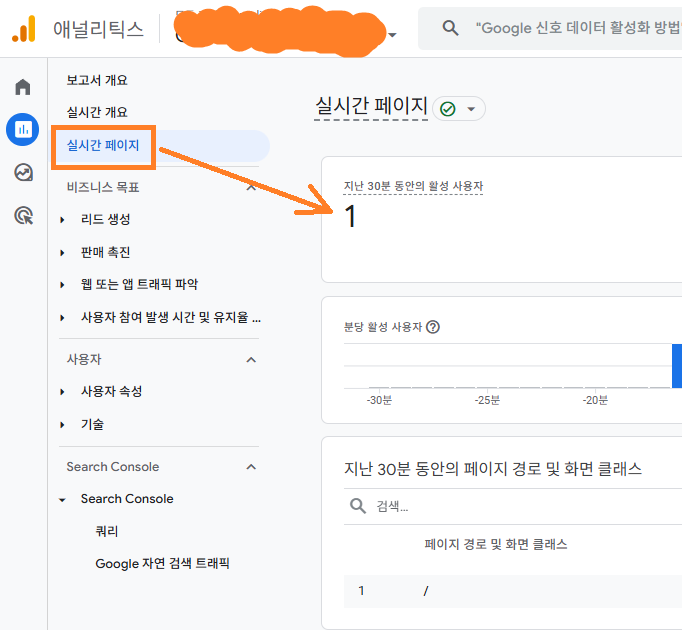 * 그런데 내 블로그를 띄웠는데도 이상하게 애널리틱스 실시간 방문자 수는 항상 0명으로 나옵니다.