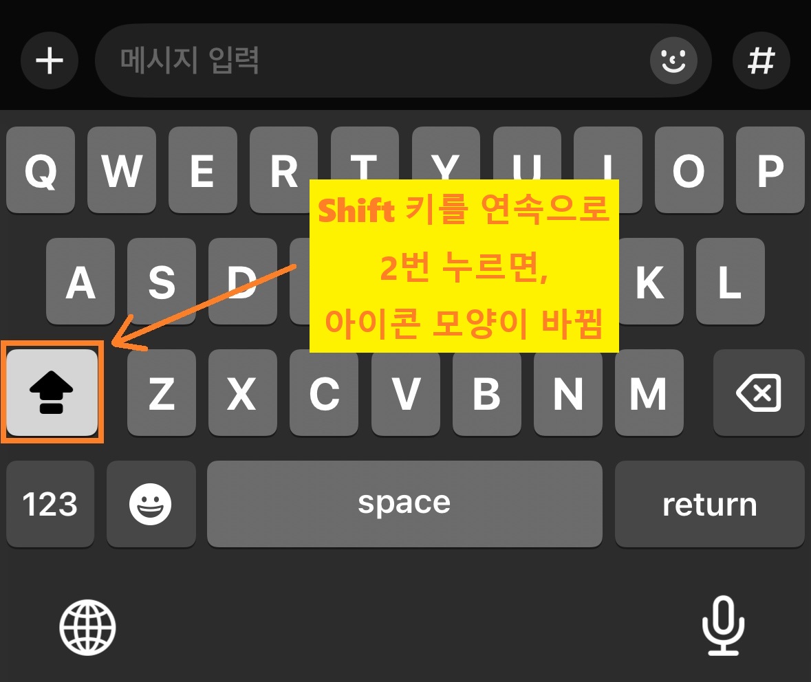 아이폰에서 영어 대문자를 입력할 때, 보통은 Shift 키를 한 번 누르고 알파벳을 누르면 대문자가 입력되죠.