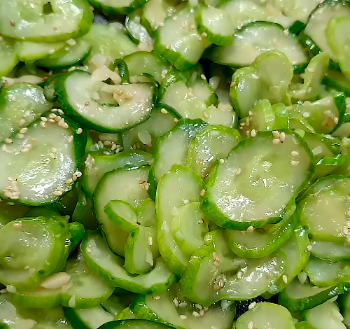 1. 오이를 먹기 좋게 썬 후, 소금 한 스푼을 넣고 15분간 절인 후, 물기를 꼭 짜 줍니다.